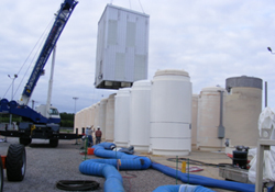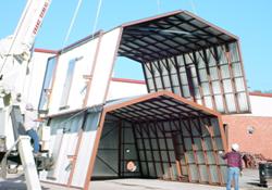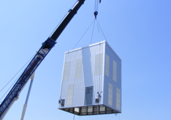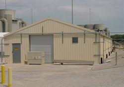 Kelly Buildings were used for storage of materials during an outage so materials could be close to work area. Buildings needed to be mounted on top of an existing concrete structure. Buildings were sub-assembled on the ground and lifted into place to reduce assembly time.