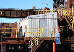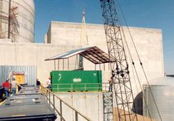 Kelly Klosure building was designed to be crane lifted and re-located multiple times. Ladders and two levels of interior catwalks were also provided. All bolt together construction and panelized design made it simple for on-site maintenance personnel to assemble the enclosure. Light transmitting panels in the walls and roof allowed for natural light within the building.