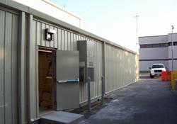 OPPD purchased the 11’2”W x 22’2”L x 8’/10’H Single Slope Kelly Klosure building to replace an aging structure that was no longer providing adequate protection for the electrical equipment it housed. The building was designed to handle the challenging environment and to fit into the unique space. Kelly’s pre-framed panelized building system also allowed for fast installation – reducing the time the electrical equipment was exposed to the elements.