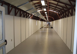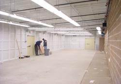 Provided turn-key design-build services for this facility under Kelly Klosure’s GSA Schedule contract. Facility was installed on a loading dock below a canopy sheeted with asbestos containing material. Shop included a compressor room and was supplied with HVAC and electrical lighting and outlets for fabrication equipment.