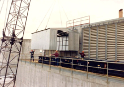 Kelly Klosure buildings were used for storage of materials during an outage so materials could be close to work area. Buildings needed to be mounted on top of an existing concrete structure. Buildings were sub-assembled on the ground and lifted into place to reduce assembly time.