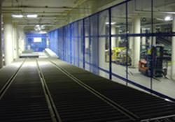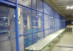 Kelly Klosure expanded metal panels were used to create a secure area inside the distribution center of a major department store chain for processing jewelry and other high value items. The ease of installation allowed the area to be created in a very short period of time and allowed the center to remain operating while the work proceeded. The client installed the panels with their own maintenance crew. The security zone was then outfitted with closed circuit cameras and magnetic keypad entry systems.